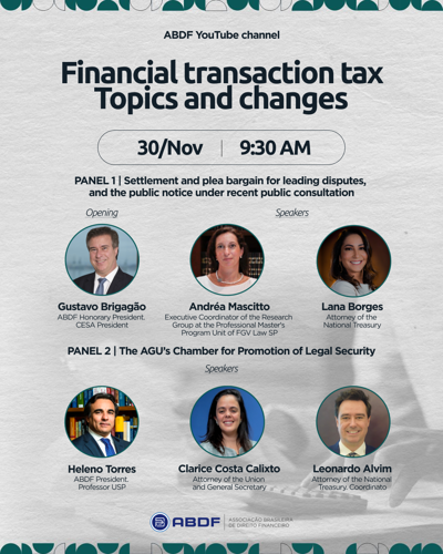 IFA Brazil invites to attend webinar: “Financial transaction tax topics and changes” on 30 November 2023 at 9:30 am (Brazilian Time)